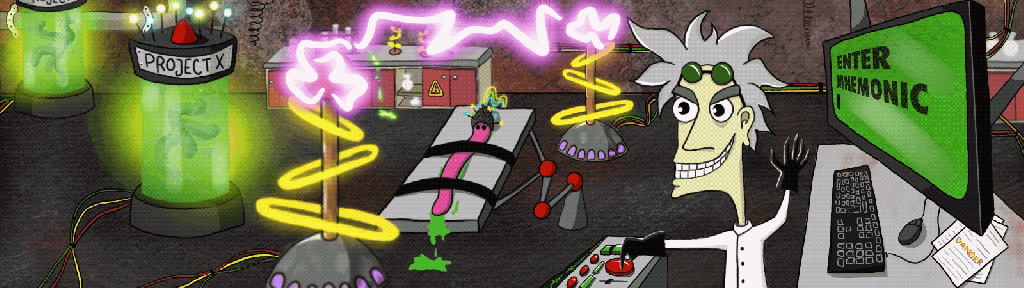 At night, while the scientist was sleeping, Kyona escaped from his terrarium. He made it to Gravius’ chemistry lab. While exploring the lab, Kyona knocked over some test tubes. The chemicals mixed and created a toxic cloud. When the cloud reached Gravius’ bed, the doctor woke up and began to scream. Slowly but steadily, the scream turned into laughter and the Gravius went crazy. He found out that Kyona was the cause of his madness. From that time on, the scientist did cruel experiments with Kyona.